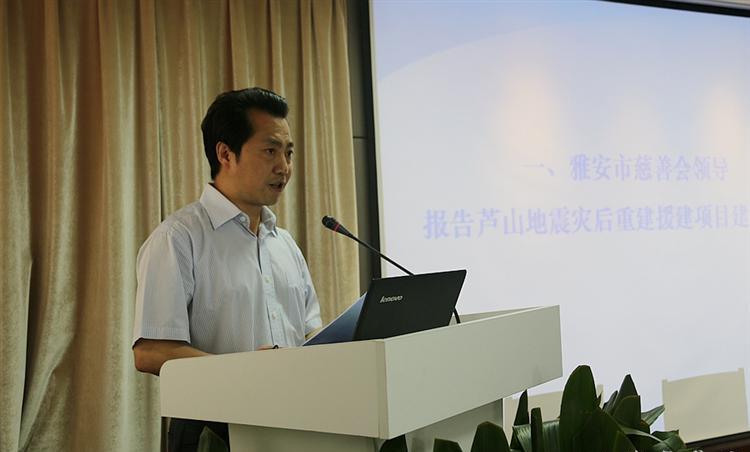 在上海市慈善基金会召开的援建项目报告会上,市民政局局长、市慈善总会常务副会长张先明向上海市慈善基金会领导、捐赠人代表和新闻媒体报告了上海市慈善基金会9100万元援建 “4.20”芦山强烈地震5个民生灾后项目重建项目情况,向上海人民表达了深深的感激之情,表示雅安人民将永远铭记感恩之心,积极传递感恩正能量,在感恩中奋进,努力建设美丽新雅安。
