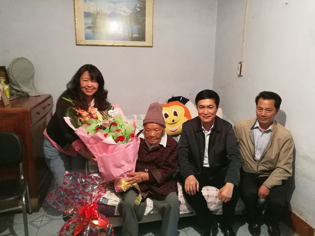 “明天就是重阳节了,我代表市委、市政府来看望您,祝您节日快乐、生活幸福、健康长寿!”10月8日下午,叶壮副省长来到家住雨城区张家山路254号的100周岁老人周维珍家后,高兴地与老人及其家人拉家常,了解周维珍老人身体情况以及享受高龄老人生活津贴、医疗服务等情况。当得知周维珍老人已是四世同堂时,叶壮嘱咐老人的女儿女婿继续发扬孝老敬老美德,关心照顾好老人,让老人开心愉快,享受幸福晚年生活。要求民政、老龄等有关部门要按照习总书记的重要指示精神,进一步建立完善全市关爱老年人的优待政策措施。